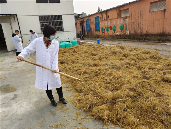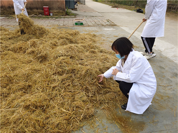 10月28日上午,肉羊产业技术体系营养调控团队成员,南京农业大学茆达干教授一行一大早即赶至徐州基地进行稻草黄贮技术指导。茆达干教授的本次技术指导,主要从稻草的含水量测定和掌控、不同秸秆黄贮菌剂的用法和用量等方面进行了详细的讲解。在其指导和协助下,徐州基地顺利完成稻草的裹包黄贮工作。