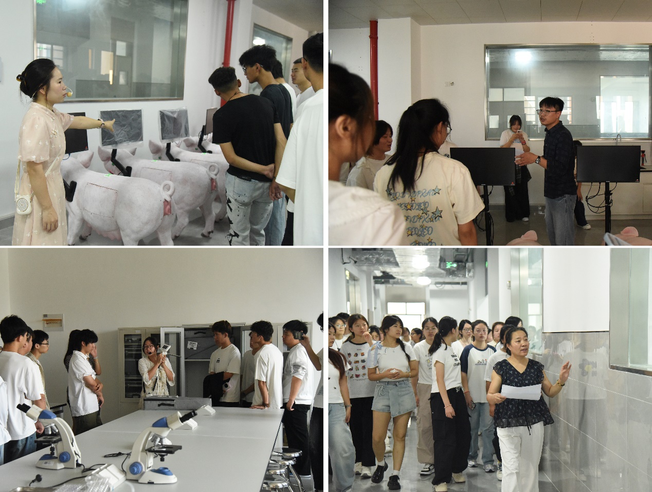 “大家现在看到的动物影像检测设备,能精准识别畜禽体内病变,是现代养殖疫病防控的关键工具。”在动物工程学院实训中心,专业教师带领新生走进动物影像、动物病理、动物临床等实训室,逐一讲解先进仪器的功能与应用场景。沉浸式的体验让新生直观感受专业内涵,这正是“启蒙链”的实践场景,帮助新生快速建立对专业的初步认知。
