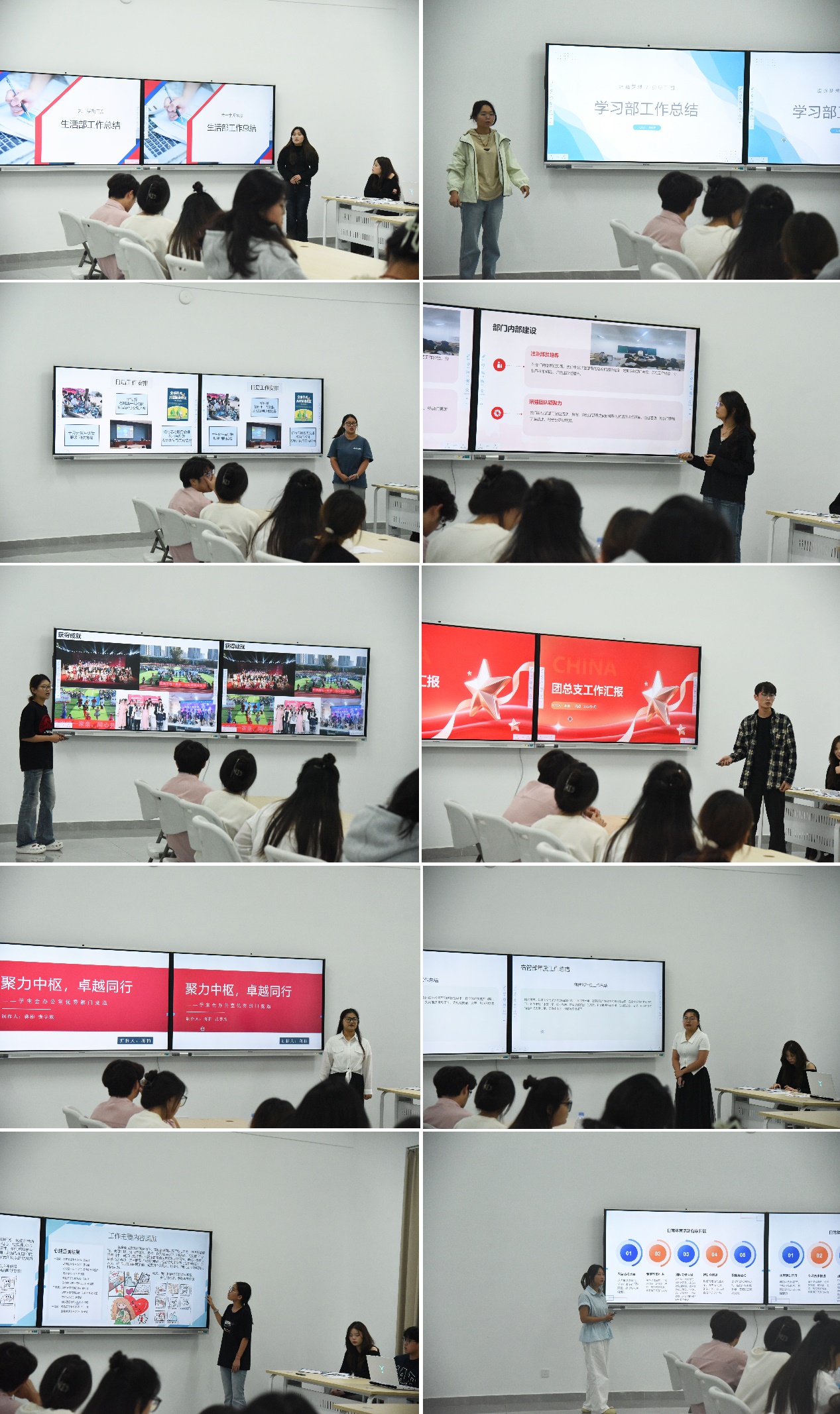此次评选活动,由学院党总支副书记董淑红、学生科科长牛绍文、辅导员李强、陈思远、蔡佳宁共同担任评委。各学生部门负责人依次上台汇报。汇报内容涵盖部门上一学年团队建设情况、特色活动、工作成果及本学年规划等方面,生动展示了部门在服务同学、助力学院发展中的积极作为。